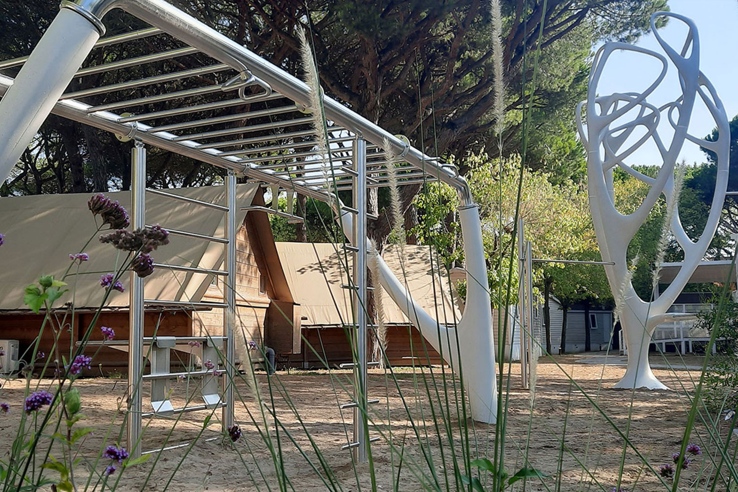 The outdoor fitness area allows you to work out immersed in the village environment, using dedicated equipment and open spaces. Perfect for those who want to maintain their routine even on holiday or simply move in the fresh air, in total freedom.